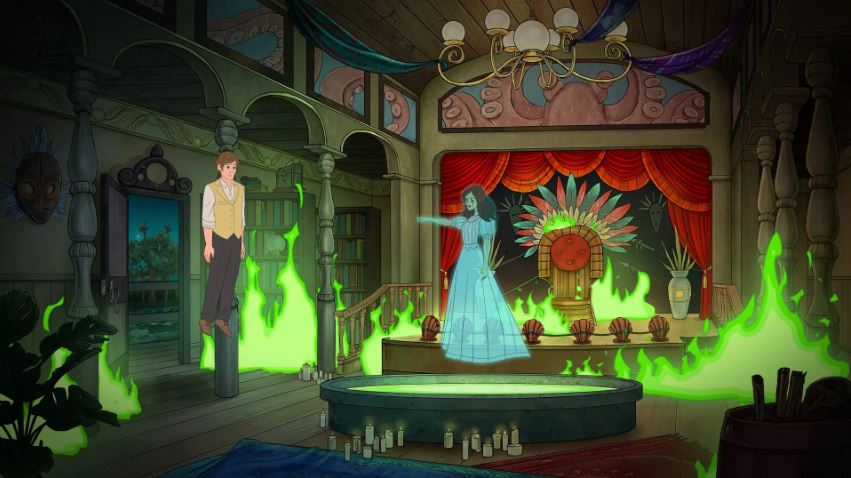 Nie będę owijał w bawełnę- poza point and clickami spod znaku Małpiej Wyspy, żadna inna przygodówka nie zaangażowała mnie aż tak na poziomie fabuły. Historia jest wielowątkowa, rozbudowana i oferuje iście książkową fabułę. Zaprawdę w miarę postępów w grze moja fascynacja rosła geometrycznie. Nie chcę zdradzać szczegółów, ale mamy tu mnóstwo motywów, które przywodzą na myśl kino nowej przygody i dostarczają tyle samo magii. I to już od samego wstępu, gdzie jazz band duchów wyśpiewuje piosenkę o zdradzonej Pannie młodej, nieszczęśliwej, naznaczonej tragedią miłości i diabolicznym spisku przebiegłego czarnoksiężnika.