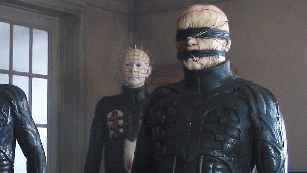 Wydawało by się, więc, że film jest tragedią nie zasługującą na to, żeby poświęcić czas na jej oglądanie, oraz na to, żeby pisać o niej recenzję. Nie jest tak do końca, film ma kilka plusów. Pierwszym z nich jest (surprsie, surprise) Dough Bradley jako Pinhead i w ogóle cenobici. I to pomimo faktu, że scenarzysta kazał im latać z tasakami, zarzynając de facto barkerowską ideę tych demonów/aniołów („angels to some, demons to others”). Cenobitów jest sporo a sceny z ich udziałem są klimatyczne i mroczne. Cieszą oko. No a Pan Bradley jest niedościgniony jak zawsze. Wprowadza sporo hellraiserowej atmosfery do zupełnie nie przystającej do tej marki akcji. Klimatyczna jest w sumie też fabuła. O ile sama akcja trąci tanim slasherem, o tyle historia kryjąca się za nią jest zagadkowa, ponura, klimatyczna właśnie i nawet jeśli nie jest „hellraiserowa”, to ma swój mroczny urok. Na dodatek zwieńczona jest przez ciekawe i zaskakujące zaskoczenie. Szkoda tylko, że przez większość seansu ginie ona za głupawymi slasherowymi schematami.